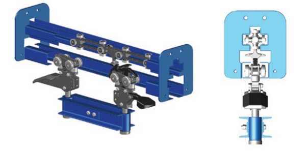 每個載貨小車的停止可以通過前小車安裝的前鏟,和后車安裝的一個尾板,前鏟沿著前面停止小車的尾板斜面上升時升降爪下落使得載貨小車牽引鏈條脫開來實現(xiàn)。還可以通過軌道上設(shè)置的停止器叉板來把前小車升降爪壓下使得載貨小車與牽引鏈條脫開來實現(xiàn)。